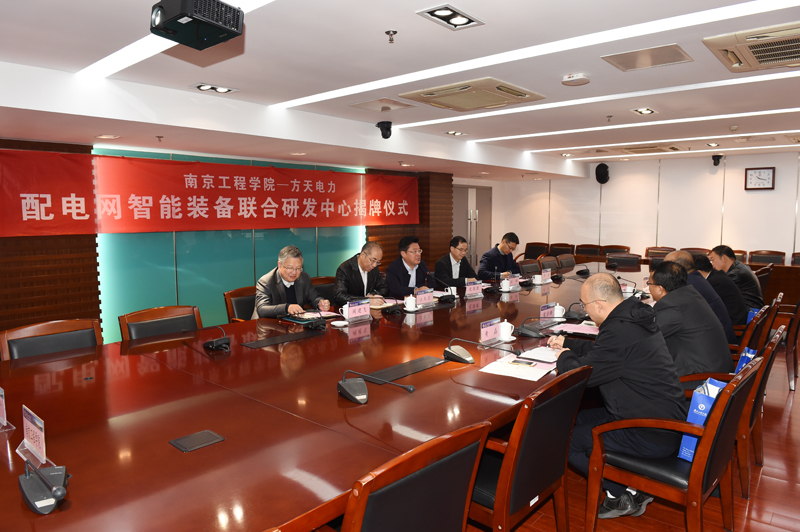 12月4日上午,“od体育网页登录入口—方天电力配电网智能装备联合研发中心”签约揭牌仪式在od体育官网至勤楼·行政中心北303会议室举行。od体育官网党委书记史国君,党委常委、副院长郑锋,江苏方天电力技术有限公司总经理王金虎、副总经理翟学锋,公司发展策划部、产品技术研发中心等有关领导出席仪式。史国君书记与王金虎总经理共同为联合研发中心揭牌。郑锋副院长和翟学锋副总经理签署联合研发中心建设协议。