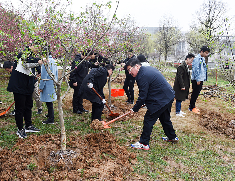 阳春三月,草长莺飞,第43个植树节带着春天的气息如期而至。3月12日一大早,在这大地回春,万物复苏之际,全体在宁校领导带领所担任第二班主任的班级同学们、相关单位负责人和各学院部分师生,在图书馆东侧学海湾绿地种植垂丝海棠等花木,为美丽校园增绿添彩。