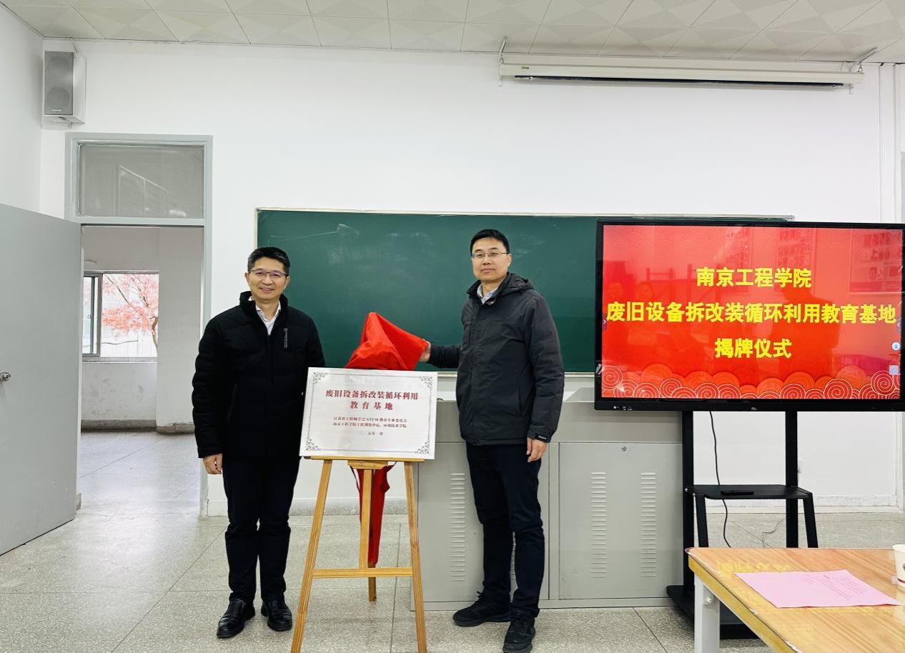1月7日上午,od体育网页登录入口废旧设备拆改装循环利用教育基地揭牌仪式在工程实践中心7号楼举行。党委常委、副校长朱松青出席活动并为基地揭牌,江苏省工程师学会STEM教育专业委员会副主任张磊、秘书长黄木水、副秘书长简栎洪参加仪式。