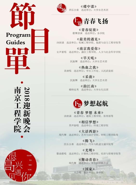 欢迎广大师生前往现场观看,为方便更多师生观看晚会节目,本场晚会特开设网络同步直播,网络直播链接地址:wh.njit.edu.cn,同时开放两个直播分会场:北区大学生活动中心、东区大学生活动中心。
