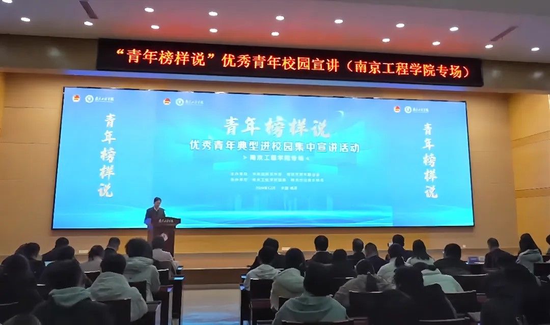 12月24日,共青团南京市委、南京市青年联合会主办的“青年榜样说”优秀青年典型进校园集中宣讲活动走进od体育官网,引导大学生共同感受榜样鼓舞人心的力量。党委书记孙爱武,党委常委、副校长汪群,共青团南京市委书记、市青联主席荣飞,南京杰出青年协会会长刘伯敏,以及南京杰出青年协会代表、od体育官网师生代表参与本次活动。