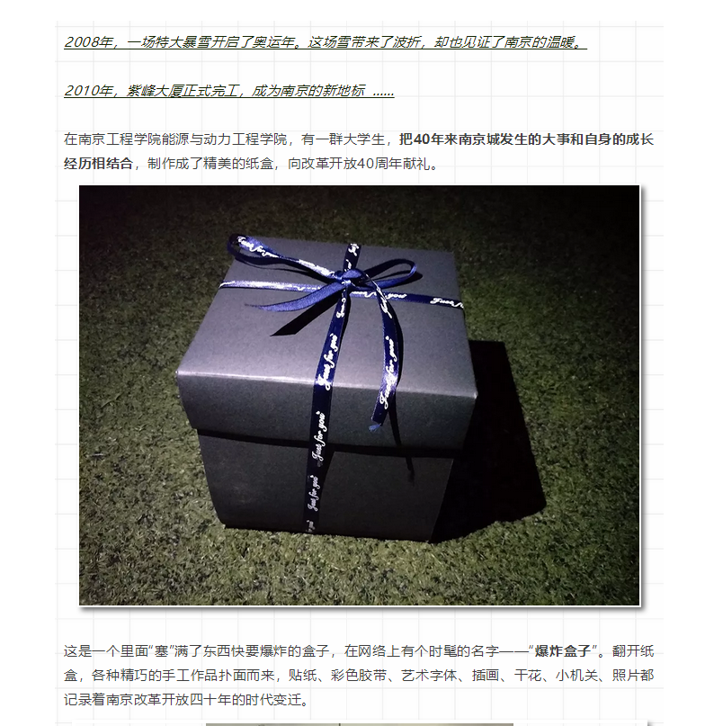 上一篇: 《人民网》:南京大学生用“表白盒子”献礼改革开放40周年