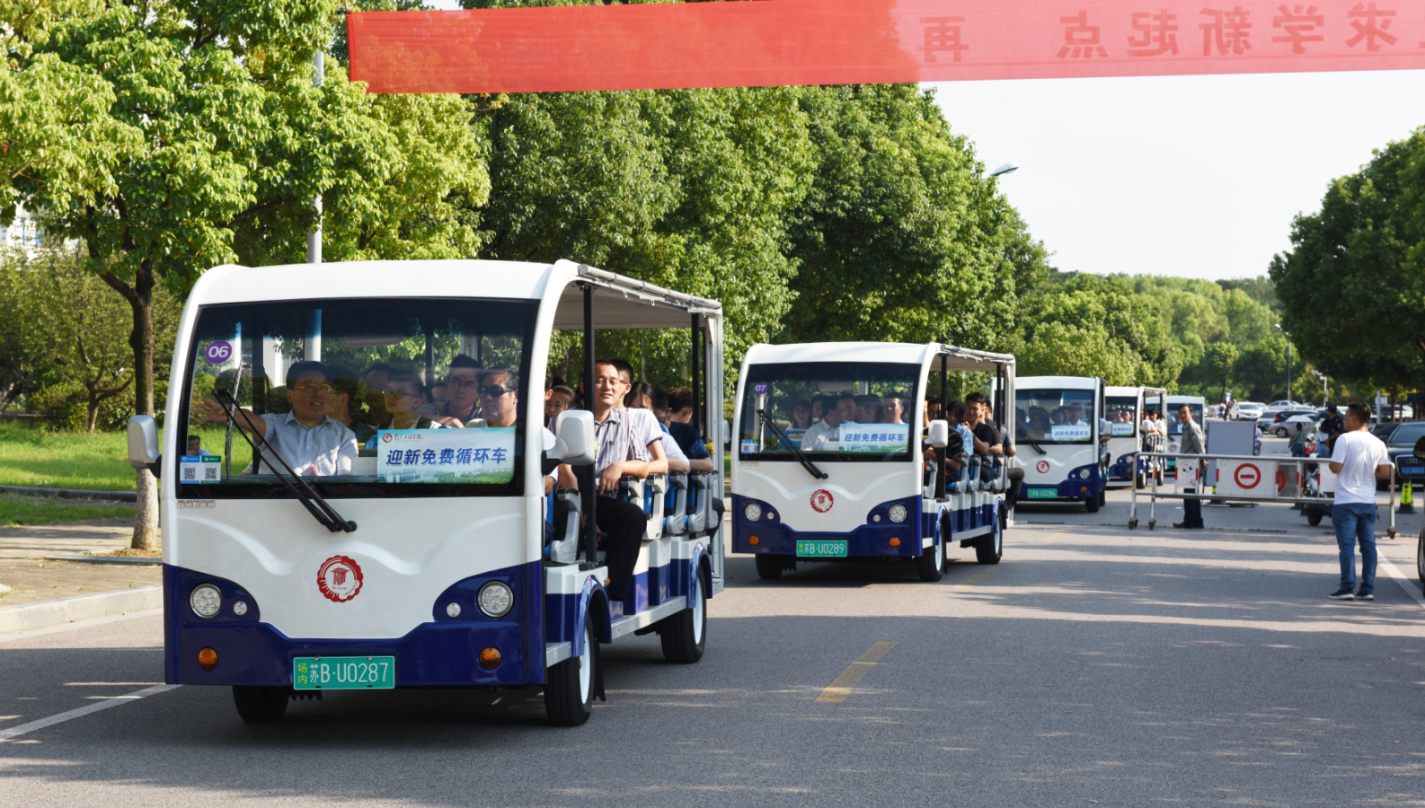 8日下午,史国君和3位副院长来到新生导师见面会现场。这一次,他们不仅为新生们开出了4年大学书单、赠送了书籍、送上大学寄语,还自告奋勇当起“导游”,带领新生和家长代表坐上校内环保小公交畅游校园。