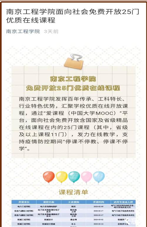 延迟开学期间学校“停课不停教、停课不停学”,是组织师生应对疫情的积极举措。该校教务处负责人介绍说,学校将通过实施“改革教学组织方式、创新教育教学手段、优化教学计划安排”三大举措,保证“教学任务、质量标准、考核要求”三个不变。3月初,学校将全面开展为期两个月的在线教学,在此期间学校全面优化调整教学安排、优化课程教学设计,组织全体教师开展线上培训和交流,为确保教学质量打下基础。为了在抗“疫”中贡献力量,经过充分准备,学校面向社会免费开放了包含国家及省级在线课程在内的25门课程。