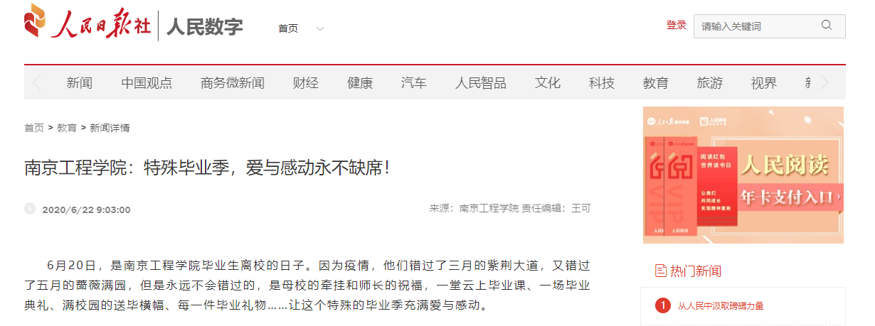 “2016年9月,你背起行囊,跨越253公里,从苏州来到南京,新的旅程扬帆起航”“有点小迷糊的你,一共补办了2次校园卡”“优秀的你,一共参加2次科创活动,获得过1项专利,1次一等奖学金,此处应有小红花”……这已经是学校连续第四年为全体毕业生准备“大数据礼包”了。校园卡使用、图书借阅、水电费花销、每一个荣耀时刻……离校当天,记录四年大学学习和生活点滴的时光账单,发送到了每名毕业生的手机上。国贸162杨婷岚看到这份账单就泪目了:“大学四年的点点滴滴就好像昨天刚发生的一样,感谢母校如此用心的礼物。”