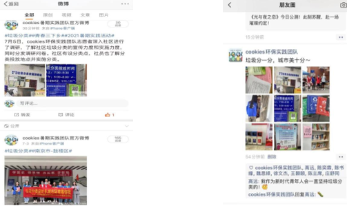 通过社区工作者与实践团队成员对垃圾分类政策的积极倡导与推行,居民们纷纷响应,逐步建立起垃圾分类和保护环境的意识,改变了以往随意处理垃圾的方式。青年大学生走出校门参加暑期社会实践,接触社会了解国情,投身于环境保护的同时,树立了正确的人生观、价值观、社会使命感和责任感。“cookies环保实践团队”团队将暑期社会实践与垃圾分类推行相结合,使大学生切实投入到为人民服务中去,将垃圾分类保护环境的思想口口相传,共同建和谐社区、美好家园。此外,实践团队在微信、微博等公众平台上分享实践成果,呼吁更多人进行垃圾分类,为文明城市的建设作出贡献,为环保事业助力。