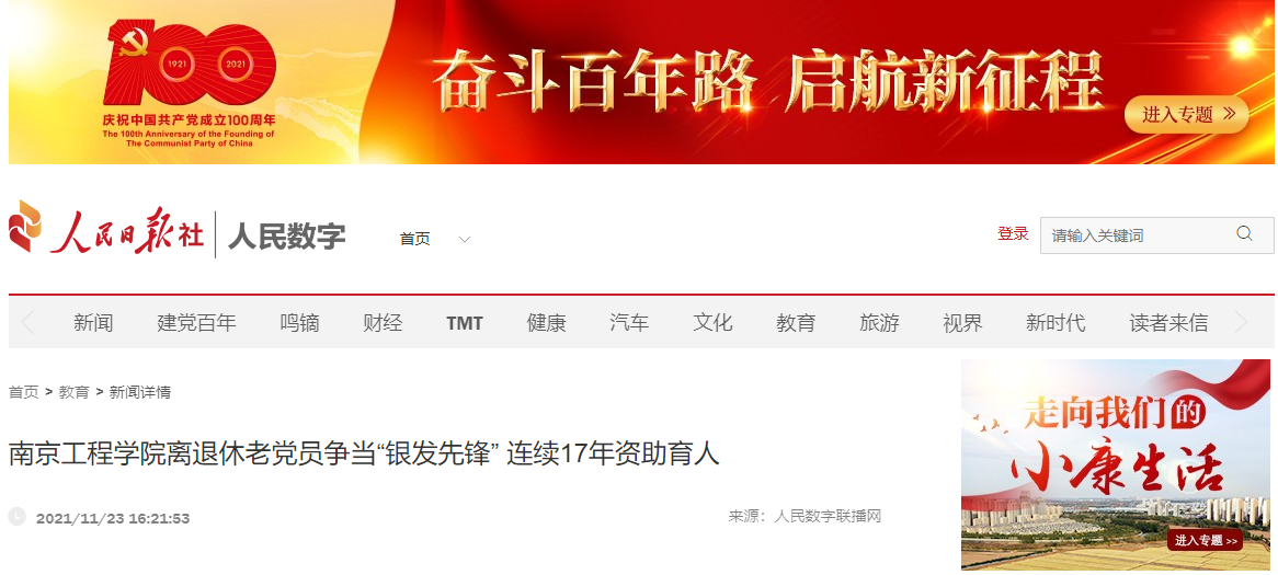 11月17日,学校组织离退休老党员代表与受助学生代表进行座谈交流。会议桌上,放着江苏省教育系统关工委专门组织编写的两套主题教育丛书《群星闪耀伴我行》和《楷模》。“滔滔钱塘江上,矗立着多座大桥,最早一座是钱塘江大桥。此桥建于1937年,毁于战火,1948年修复,至今没有进行过技术上的大修。它的设计者,就是被誉为‘中国现代桥梁之父’的茅以升。”离退休党工委在职支部书记雍明旭为大家领学了《群星闪耀伴我行》书中《茅以升:人生之桥 名为奋斗》文章,与会师生都听得入神、感慨万千。老党员们表示,在共读楷模故事、共忆百年党史中与同学们共话成长还是第一次,新颖的形式打开了他们的话匣子,老党员们纷纷结合自己的亲身经历,鼓励同学们要从百年党史中汲取前进力量,要在应对各种困难挑战中不断完善自己,听党话、跟党走,让青春在党和人民最需要的地方绽放绚丽之花。学生代表表示,自入校以来,学校里的老师们,以及今天认识的老党员们都给予了我们很多的帮助和关爱,让我们如同沐浴着温暖的阳光,感受到了满满的正能量。我们一定不辜负学校和老师们的希望,恪守“学以致用”的校训和“知行统一,创业创新”的校园精神,以书中和身边的先进典型为榜样,努力学习,奋力前行,立志报效祖国,回报社会。