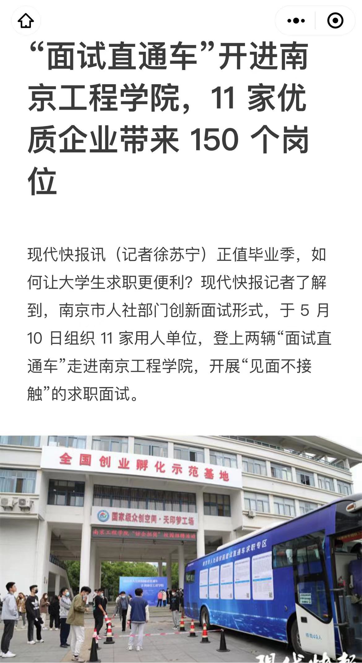 据了解,11 家用人单位带来了 150 个岗位。所有入校人员持 24 小时内核酸检测阴性证明、查验两码,测量体温,全过程封闭管理。当天的现场分为等待区、面试区、求职区、就业指导区四个区域。在等待区,工作人员在收取学生简历,并发放面试号码牌。在面试区,两辆“面试直通车”共设置 11 个面试窗口,车窗上印有相对应企业名称。整个过程招聘人员不下车,HR 和学生通过语音对话系统“隔窗面试”,既面对面,又不接触。