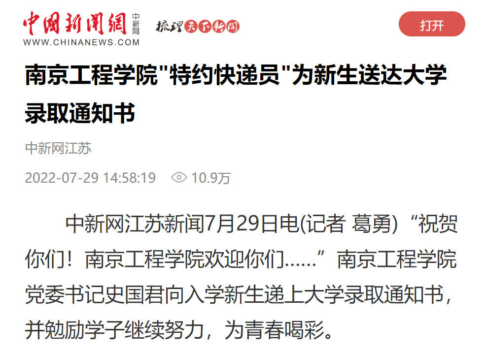 中新网江苏新闻7月29日电(记者 葛勇)“祝贺你们!od体育网页登录入口欢迎你们……”od体育网页登录入口党委书记史国君向入学新生递上大学录取通知书,并勉励学子继续努力,为青春喝彩。