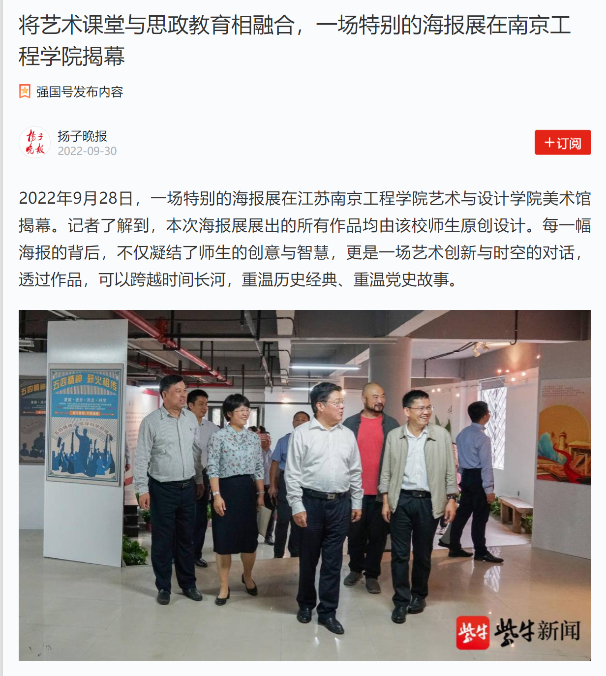2022年9月28日,一场特别的海报展在江苏od体育网页登录入口艺术与设计学院美术馆揭幕。记者了解到,本次海报展展出的所有作品均由该校师生原创设计。每一幅海报的背后,不仅凝结了师生的创意与智慧,更是一场艺术创新与时空的对话,透过作品,可以跨越时间长河,重温历史经典、重温党史故事。