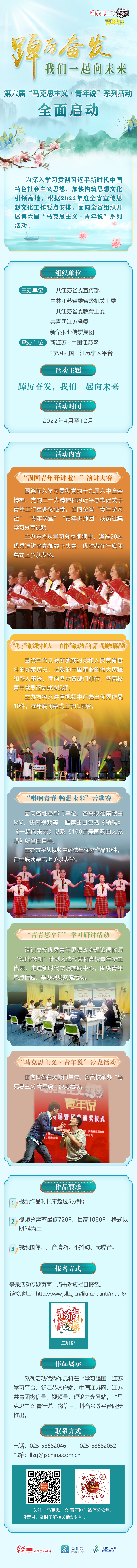 为深入学习宣传贯彻习近平新时代中国特色社会主义思想,加快构筑思想文化引领高地,第六届“马克思主义·青年说”系列活动以“踔厉奋发,我们一起向未来”为主题,面向全省开展线上线下活动,以实际行动共同迎接党的二十大胜利召开。报名请扫描下图中二维码。