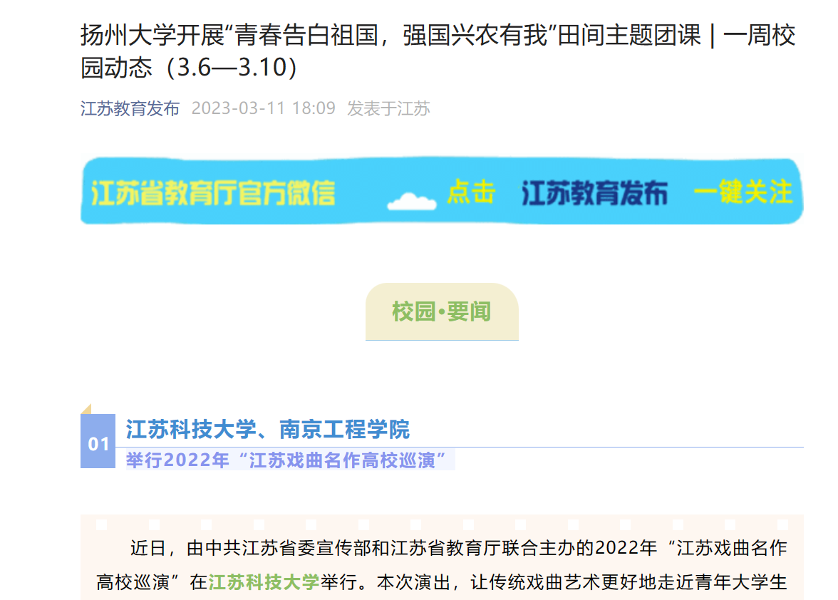 《江苏教育发布》:od体育网页登录入口举行2022年“江苏戏曲名作高校巡演”