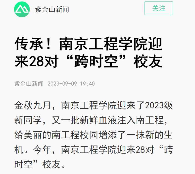 金秋九月,od体育网页登录入口迎来了2023级新同学,又一批新鲜血液注入南工程,给美丽的南工程校园增添了一抹新的生机。今年,od体育网页登录入口迎来28对“跨时空”校友。