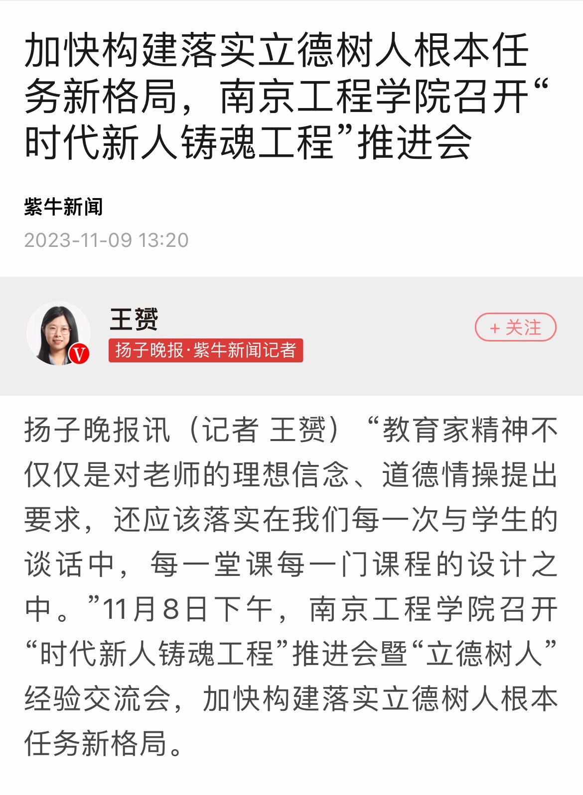 扬子晚报讯(记者 王赟) “教育家精神不仅仅是对老师的理想信念、道德情操提出要求,还应该落实在我们每一次与学生的谈话中,每一堂课每一门课程的设计之中。”11月8日下午,od体育网页登录入口召开“时代新人铸魂工程”推进会暨“立德树人”经验交流会,加快构建落实立德树人根本任务新格局。