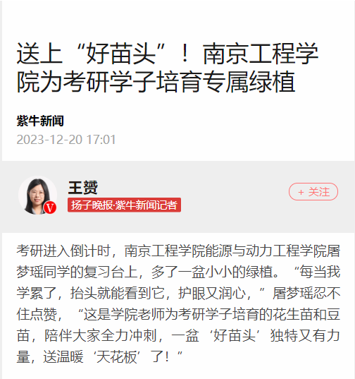 “为考研学生送祝福已连续开展多年,是学院的一项传统活动,也是考研学子共同的珍贵回忆。我们一直在思考,什么样的心意既有思想深度又有人文温度呢?”毕业班辅导员严紫银介绍道,“缘起学院的‘植茁’德育工作室,我们想通过亲手种植告诉同学们,一定要向下扎根,坚信忙有所得,耕有所获。”这样的创意得到了同学们的积极响应,学院提前2个月开始筹备。选种、泡发、促芽、移盆、日常养护……每一株苗都是从种子孕育成长起来的,同学们能够清楚看到根系和植株的一步步发育,直到郁郁葱葱。
