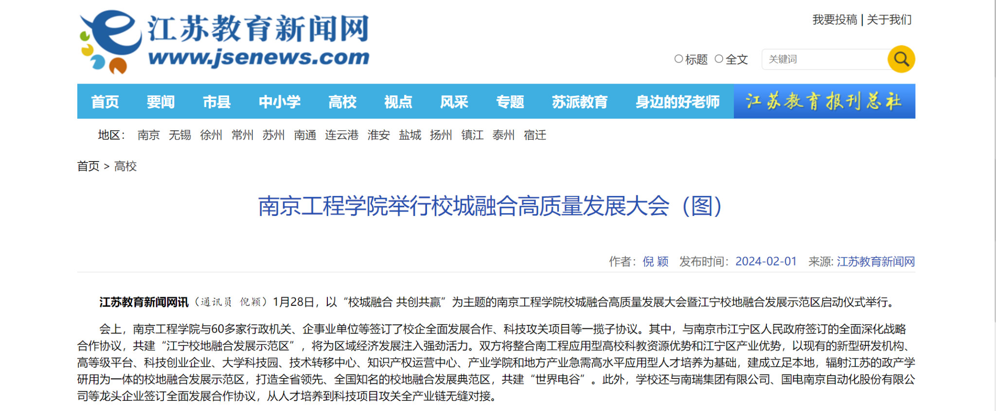 《江苏教育新闻网》:od体育网页登录入口举行校城融合高质量发展大会