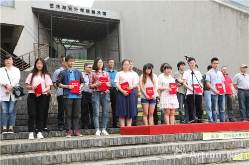 开幕式上还对本次毕业设计中涌现出的优秀作品进行了颁奖。视觉121班刘欣雨同学代表毕业生发言,她提及在毕业设计中,从选题,创意的多次修改到最后的定稿,每一个步骤都离不开老师的悉心指导,老师的教诲和学校的培养值得终生铭记。