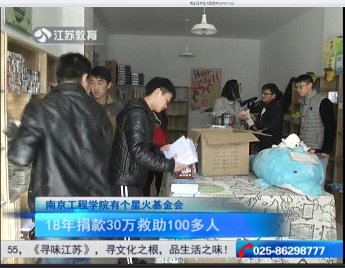 【画外音】目前,该校有155名大学生加入该基金会,金莉是工艺美术专业的大三学生,家境贫寒的她努力上进,学费、生活费基本上靠的是奖学金和做兼职。日前,她刚获得国家励志奖学金5000元,当她得知同学患急性白血病,就把5000元奖学金全部捐赠出来。
