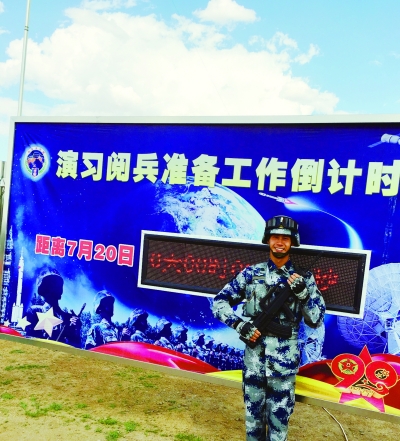 今年6月18日,汤家伟和战友们一起来到朱日和基地,开始为期一个多月的高强度训练。那一个多月里,他心里一直憋着一股劲儿,那就是一定要认真训练,一定要成为阅兵式上的一名接受检阅的战士。刻苦训练加上自身过硬素质,汤家伟终于正式成为阅兵式受阅部队一员,他感觉自己当兵生涯最光荣的一刻终于要来临了。