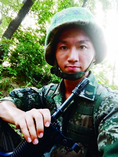 夏斌今年已经大四,见到他时,他刚从部队退伍不到1个月,还保留着在部队训练留下的健康肤色,短短的平头,特别精神。虽然回到了校园,但夏斌保留着在部队时的习惯——每天早上6点准时起床,打扫宿舍,到操场跑步,“回来后不像在部队有那么多体能训练,要保持体能,就必须自己加强训练。”